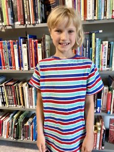 – Ja, det har jag. Den heter ”Allt om Kerstin”. Det är en högläsningsbok. Den ingår i en serie. Det finna flera böcker om Kerstin. Den här handlar om sommarlovet. Kerstin får besök av sin kusin Bella som är tonåring så sommarlovet blir inte riktigt som Kerstin har tänkt.